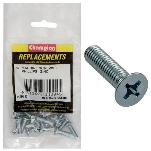 C1786-12 | Champion M6 x 20mm Machine Screw -Csk -Ph -25pk