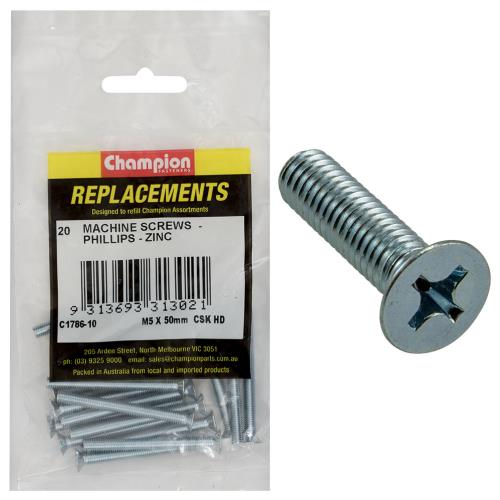 C1786-10 | Champion M5 x 50mm Machine Screw -Csk -Ph -20pk